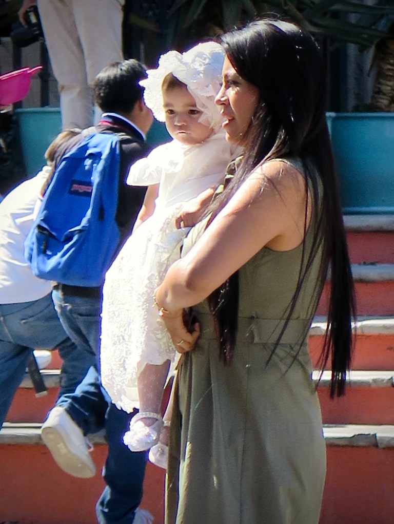 Several beautifully dressed babies were awaiting baptism in front of the church
